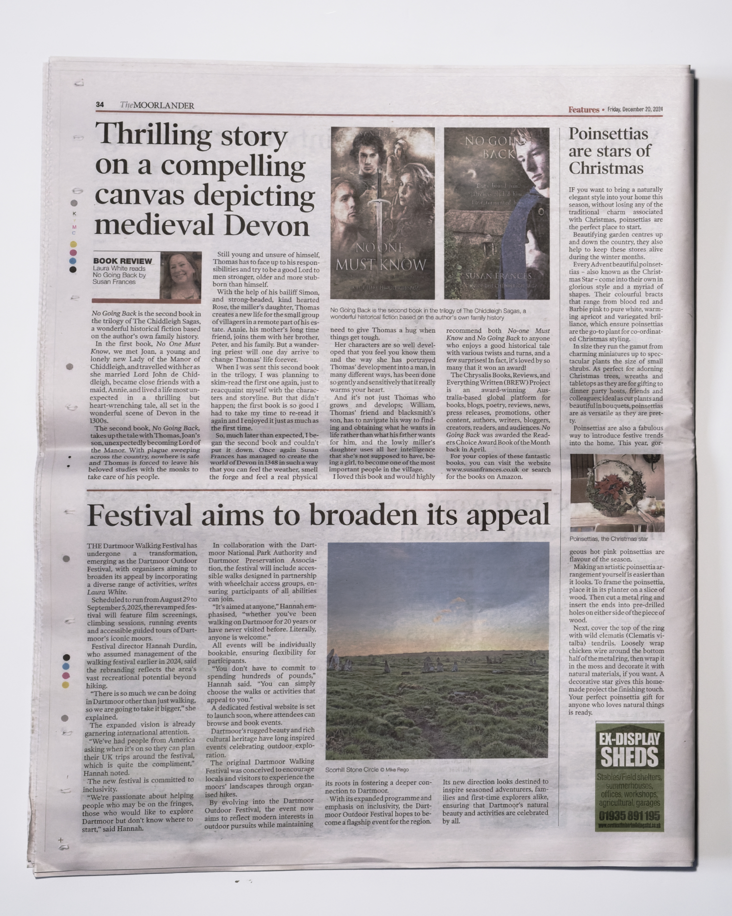 I now live in Devon and when I'm not writing I enjoy gardening and walking with my husband and Douglas our dog.